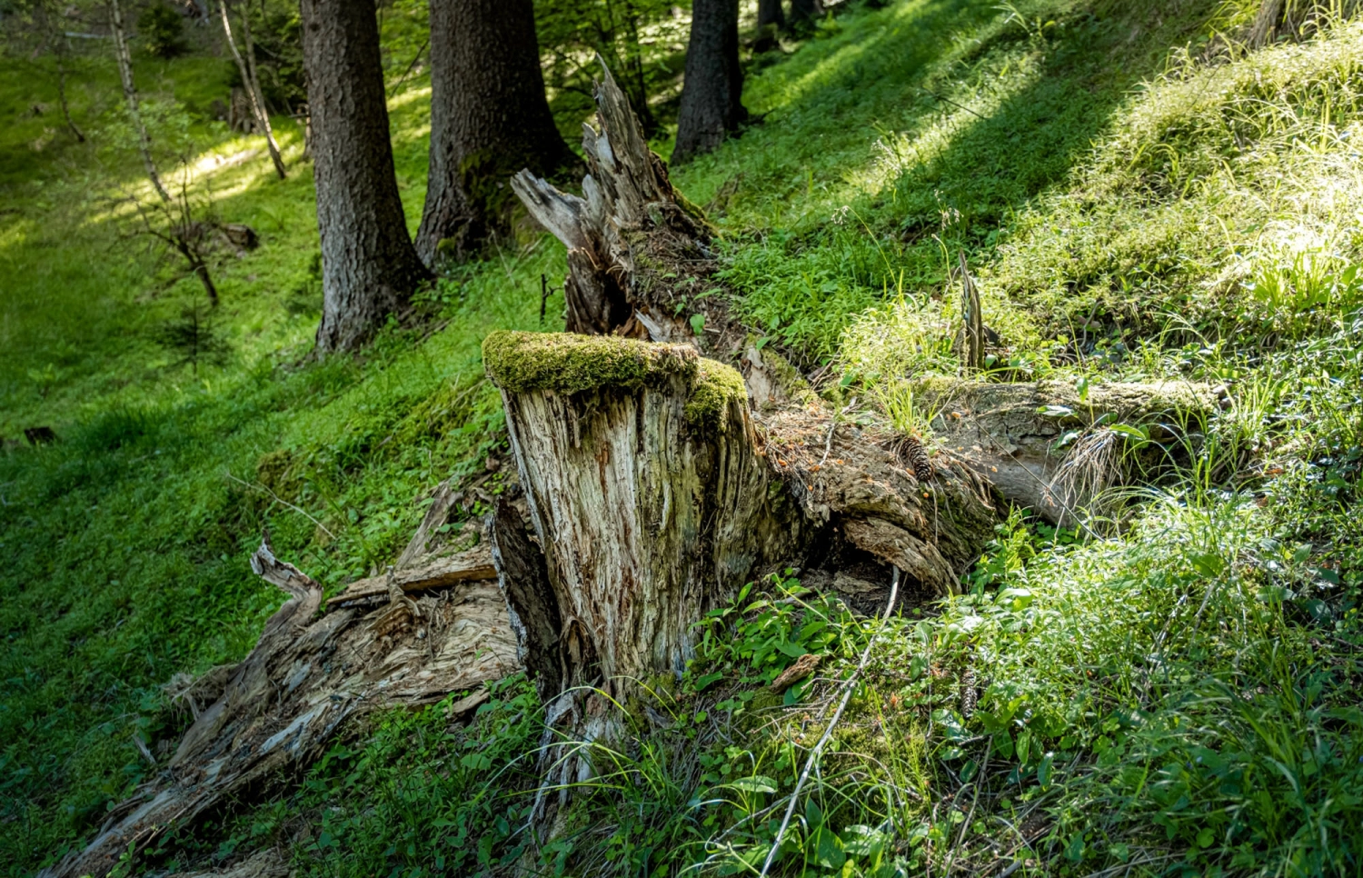 Nicht nagelfestes Holz wird im Bestand liegend genutzt. Dieses Holz sieht im Auge des Betrachters möglicherweise nicht schön aus, ist im Gebirgswald jedoch von besonderer Bedeutung für die Waldverjüngung: es ist Keimbett und Wärmespender, erhöht die Biomasse und die Biodiversität.